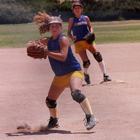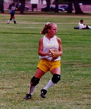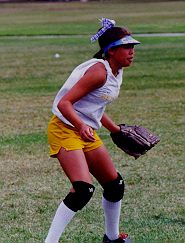 Keely is the team rocket-ship. She plays center (and LF and RF) and is a bunt/slap specialist. She usually bats left, but can hit from the right with very good power. She throws right. |
